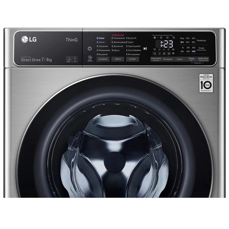 | автоматические программы стирки | Хлопок, Хлопок+, Смешанная, Повседневная, Бесшумная, Гипоаллергенная (с паром), Детская одежда (с паром), Деликатная, Шерсть, Быстро 30, Сушка, Стирка+Сушка (4 кг), Очистка барабана, Моя программа |